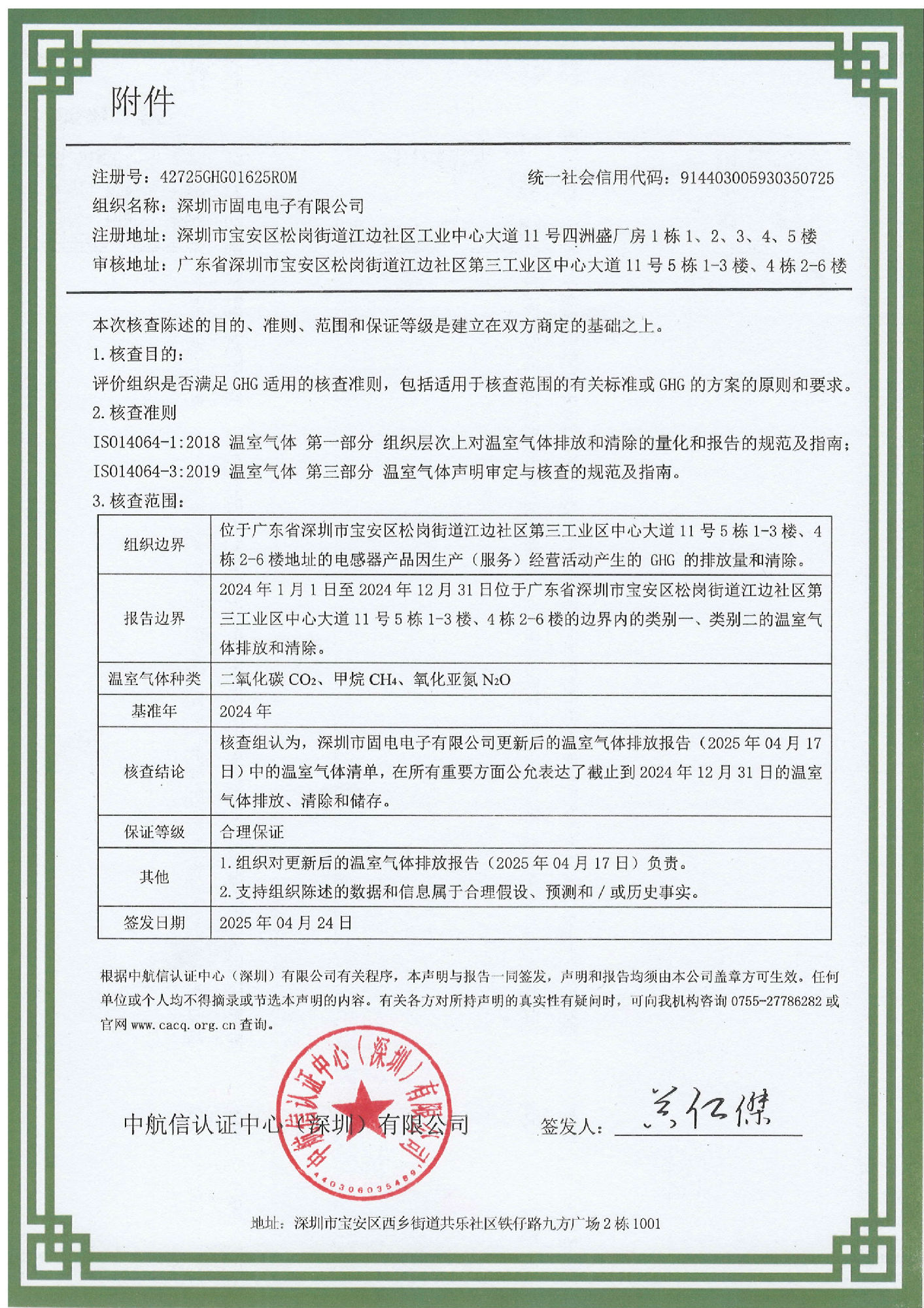 14064-溫室氣體核查聲明證書